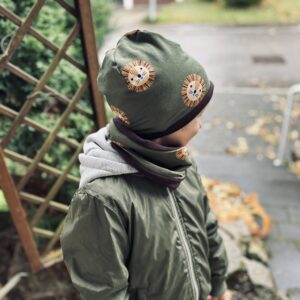 bei einem Kopfumfang bis 40cm wird das Halstuch noch mit Druckknopf verschlossen